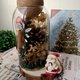 ● 材料:松果、尤加利果实、迷你日本莲蓬、日本海胆果实、绿水草、松萝、永生绣球花、肉桂、木片、索拉花、蕨叶、亮球、公仔圣诞老人、底座木片
