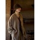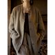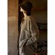 偏中式的领子,正好还能安放一粒纽扣。开门襟到底,古董气息偏着暖感的牛角扣,表面做旧的斑驳感,将衫的厚重与麻香气韵点化地刚好。落肩式长袖,落肩的分割我们调整了许多次,与此对应的还有袖肥,袖肥的大小异常关健,一旦与落肩结合,如果比例不合理,就会过度的颓废,袖口结合了克夫,帅气在麻当中就增加一点利落的形态。