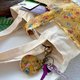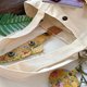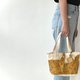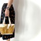 设计师将简约的纯白手挽袋手缝拼配极具秋日感的意大利花纹羊革,令平平无奇的小布袋变得不平凡。