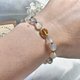 - 落日之滨手链以黄水晶、紫玉髓与橙月光组合,搭配925纯银设计。象征秋分暮色的平衡与柔韧,凝聚财富能量、安抚情绪并带来智慧与信心,寓意丰盛与安定并存。