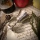 非常精致的纯银杯,外表有扭索纹饰面环绕雕刻,正面有信件造型的雕刻,上面刻有订制的歌德字体落款,有法国纯银Minerva印记,高贵且典雅,非常难得的古物。