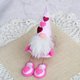 **Handmade pink gnome for birthday or Valentine's day gift. Cute car accessory hanging gnome for car mirror decoration. Funny gift for her.**