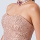 穿上我们的香槟色抹胸鱼骨裙并散发迷人魅力。糅合东方优雅与西方风格的完美融合这款鸡尾酒裙拥有时尚的侧开衩,并配有可拆卸的旗袍领,能让您轻松变换造型。无论是酒会还是特殊庆祝活动都十分适合。