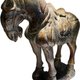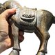 此件为唐代风格和田玉胡马雕件,整料雕琢而成,体量硕大,重量达 3277 克,属同类玉马中极为少见之规格。整体造型呈立马低首之姿,马颈前倾、四肢稳健,线条浑厚内敛,展现盛唐时期对马匹“内敛力量与威仪气度”的审美特征。