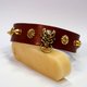 我们在毛爸妈手环上点缀以骷髅头造型及金属圆型钉扣来呼应毛小孩神秘的童话项圈,