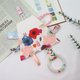 【手摇铃】11cm×11cm,表布/韩国棉布、韩国豆豆布,内有响铃,并附圆形透明摇铃(内有彩球)。
