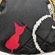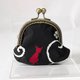 这款零钱包选用带有猫咪与樱花图案的黑色和服布料精心制作而成。