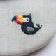 - A Liberty Art Fabrics wee pouch with hand-embroidered toucan motif, perfect for keeping all your daily essentials.