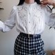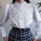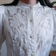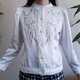 复古白色衬衫,涤纶面料,真丝镂空设计,泡泡袖高领,浪漫白色衬衫