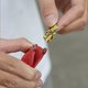 以手工真皮打造的红龟粿皮套象征平安长福,背后以金字手写祈福,内层可放小平安符或圆形磁扣。