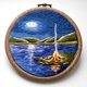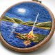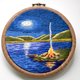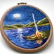 This landscape art is embroidered by hand using cotton floss and 100% linen fabric. I framed it into the medium embroidery hoop with hanging. I used a high quality original DMC floss so the colors won’t fade and the picture won’t lose its vividness and brightness.