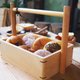 台湾早期庶民生活”谢篮”扮演着十足重要的角色,凡遇祭祀,送礼,食材运送都有谢篮的出现,此木提盒即以传统谢篮为发想概念,转化成现代人使用的食盒与野餐篮,上盖特意以不同颜色木头镶嵌成十字,代表礼物的意象,盼能让生活回归到简单礼尚往来的单纯美好