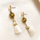 金色六角耳针,金色波纹圆珠,施华洛小水晶,白色贵气流须