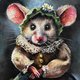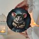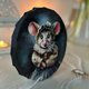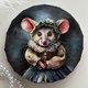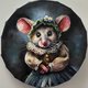 这位可爱优雅的老鼠女士最初是用压克力颜料在棉质拉伸圆形画布上绘制的。剧情独特,穿着复古洋装的漂亮老鼠小姐显得神秘又迷人。