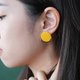 很亮眼的太阳花黄,几何圆形加上镂空的金色线条,普普风很可爱~针式耳环