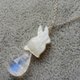 石编号 R1 ~贝母白兔 加 切面玻璃体强光月亮石纯银锁骨项链