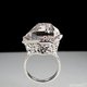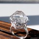 将拥有高度透明感与表面光泽的赫基默钻石,镶嵌于镂空雕花的戒台之上。