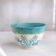 A unique, delicate and beautiful bowl with a picture of aquatic plants and blue goldfish.