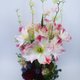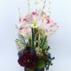 作品特色:选用进口高阶拟真花材,较不易沾染灰尘,以特级拟真花材手工制作而成的植栽花饰,附加扩香试管,环境美化同时带有芬芳的香气。