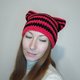 猫耳朵豆豆钩针编织非常柔软,亲肤。 猫耳朵针织无檐小便帽。 钩针编织条纹无檐小便帽。 毛茸茸的猫耳朵豆豆是最时尚的配饰! 毛绒无檐小便帽紫黑色是送礼的好主意!