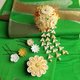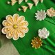 材质:主花与配花使用正绢缩缅(ちりめん),其他部分使用人造丝缩缅、铜座金、玻璃珠、纸芯。