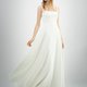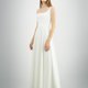 Simple wedding dress EVITA with A-line silhouette and square neckline. Modest wedding dress comes with double layered skirt from crepe and chiffon.