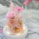 **材料说明:约80%永生花。20%干燥花。混合设计,玻璃罩为白底夜灯款**