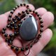 介绍: 此项链是由许多小粒琉璃珠及一颗天然天眼水滴型黑曜石组成,包浆油润、皮壳厚实,整体器形美丽时尚,值得珍藏拥有! 注:水滴型黑曜石,墨黑色,不透光