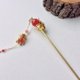 主要材料:红玛瑙、西瓜晶、捷克水滴、捷克花形珠、原铜色花片、原铜色簪杆等。