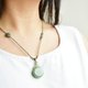 搭配手工编织浅绿色和浅灰色线绳,浅咖啡色绕线作为链接和点缀。搭配同色系圆牌隔珠和危地马拉翡翠隔珠,收尾搭配同色系老形珠,可调节收尾,方便佩戴和调节长度!