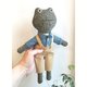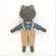青蛙男孩毛绒玩具,高度 - 30 厘米(12 英寸),羊毛花,防过敏合成填充物。蓝色棉质衬衫和沙色棉质工作服。绣有眼睛和鼻子。所有衣服均可脱卸。如果您想要其他衣服 - 请联系我。