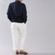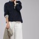 This bottle neck looks very very nice! Simple and elegant. This top feels very cozy with smooth linen fabric and drop shoulder design.