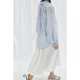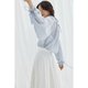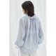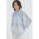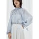- 整件衣服是宽松的廓形 袖子是灯笼袖的设计 不挑身材 无论是单穿或者搭配外套裙装都显得很有味道。 后片和袖口都有抽带,抽起来的时候有细致的褶皱, 微微透的面料,非常低饱和的蓝调,显得轻盈又温柔。