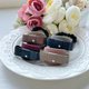 使用韩国进口的模具(约4.5cm x 3cm),搭配一样是韩国进口的素色布和人造皮革织带做成的蝴蝶结;蝴蝶结上再加一小颗贴钻做装饰,成品质感简约好搭配。