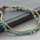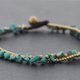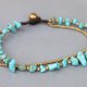 这是手工编织的脚镯,由深棕色棉蜡线和绿松石和黄铜珠编织而成。关闭使用铜钟
