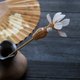 作法跟拈花微笑发簪类似,觉得这样花朵似开未开很美,正中间用一个翡翠小花做点缀,花瓣为白色跟藕紫色搭配,若要全白或全藕紫色可选择。