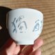 艺术家白瓷手拉坏,再加上书法家釉下彩手写手绘,1280度高温烧制。每个皆是独特且唯一。适合品茗喝茶与收藏摆饰。高约6厘米,直径约7厘米。