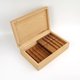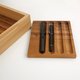 笔盒以台湾桧木旧料再制,盒子结构采用鸠尾榫接工法,一凹一凸密实的结合,美观又耐用。