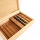 内部笔盘则是台湾杉、香杉等,颜色相较台湾桧木于暗沉,内外盒颜色上形成了对比,笔盘上下两层总共能放置10+4只装,上层可取出或左右滑动,方便拿取下层钢笔