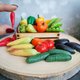 🍆不同种类的微型蔬菜:番茄、黄瓜、茄子、彩椒、青三角椒、辣椒、玉米、豆荚豌豆、豆荚红豆。 非常现实和真实。 你的娃娃会很高兴!
