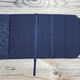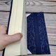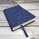 这款书套采用深蓝色水滴纹棉布制成,内里则以素色布料缝制,并附有一条深蓝色丝带作为书签。