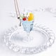 Pour ice and soda into a coffee shop-like glass and put soft cream, mandarin orange and cherries