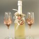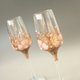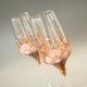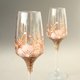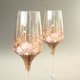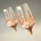Hand-painted champagne wine glasses, set of 2. Rose gold plating imitation, distress effect, pale pink floral design, Large Water lily opal Swarovski Crystals, rose gold crystal rhinestones, copper Swarovski crystals. One of a kind glasses.