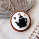 A brooch that embroiders a coffee pot that is very useful during coffee time.