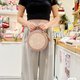 SHUKI 星空绣花圆形袋(灰粉色)