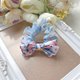 发圈上选用呼应发圈图案的满版小雏菊印花织带、折成自行发想的小蝴蝶结做装饰,简单可爱。