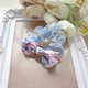 这系列使用韩国进口小雏菊图案的欧根纱、缝制的大肠圈;内芯使用日本制造进口的韧性强、不易松弛的松紧带,成品很轻盈。