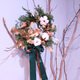 花材选用的是金色忍冬、雪松、棉花以及金色和大地色的果实组合而成,以及一些银灰色的永生叶材