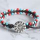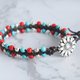 I used black real leather and added 3 different beads together into this bracelet: turquoise, red corals & silver plated beads. The silver daisy flower closure makes the leather wrap bracelet for women looks so sweet.