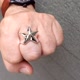 体验我们纯银星戒的力量与威望。这款醒目的戒指以雕刻的五角星为特色,象征着荣耀、雄心与韧性,骄傲地坐落在您的手指上。每一枚戒指由银匠手工打造,抛光至镜面般光泽,配戴舒适、历久幽断。